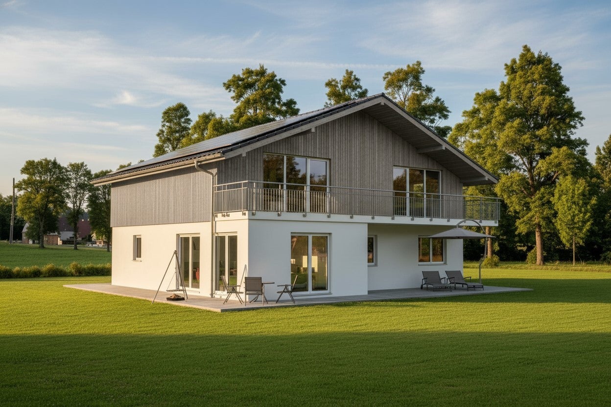 Hie eine Variante, wo im EG eine komplette Wohnung Platz findet und im DG ein Appartement und 2 zusätzliche Zimmer.